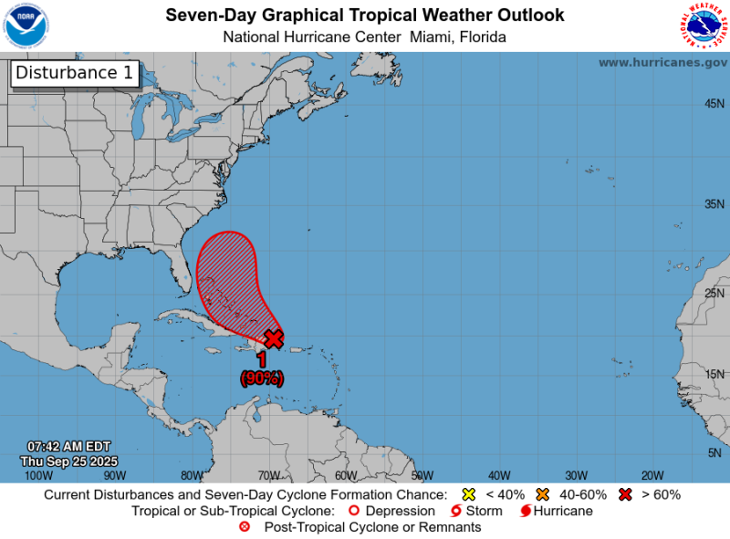 Aunque el desarrollo ciclónico aún no está confirmado, el NHC recomienda vigilar el fenómeno, ya que traerá lluvias torrenciales y ráfagas de viento sobre República Dominicana y las islas Turcas y Caicos, independientemente de su evolución.