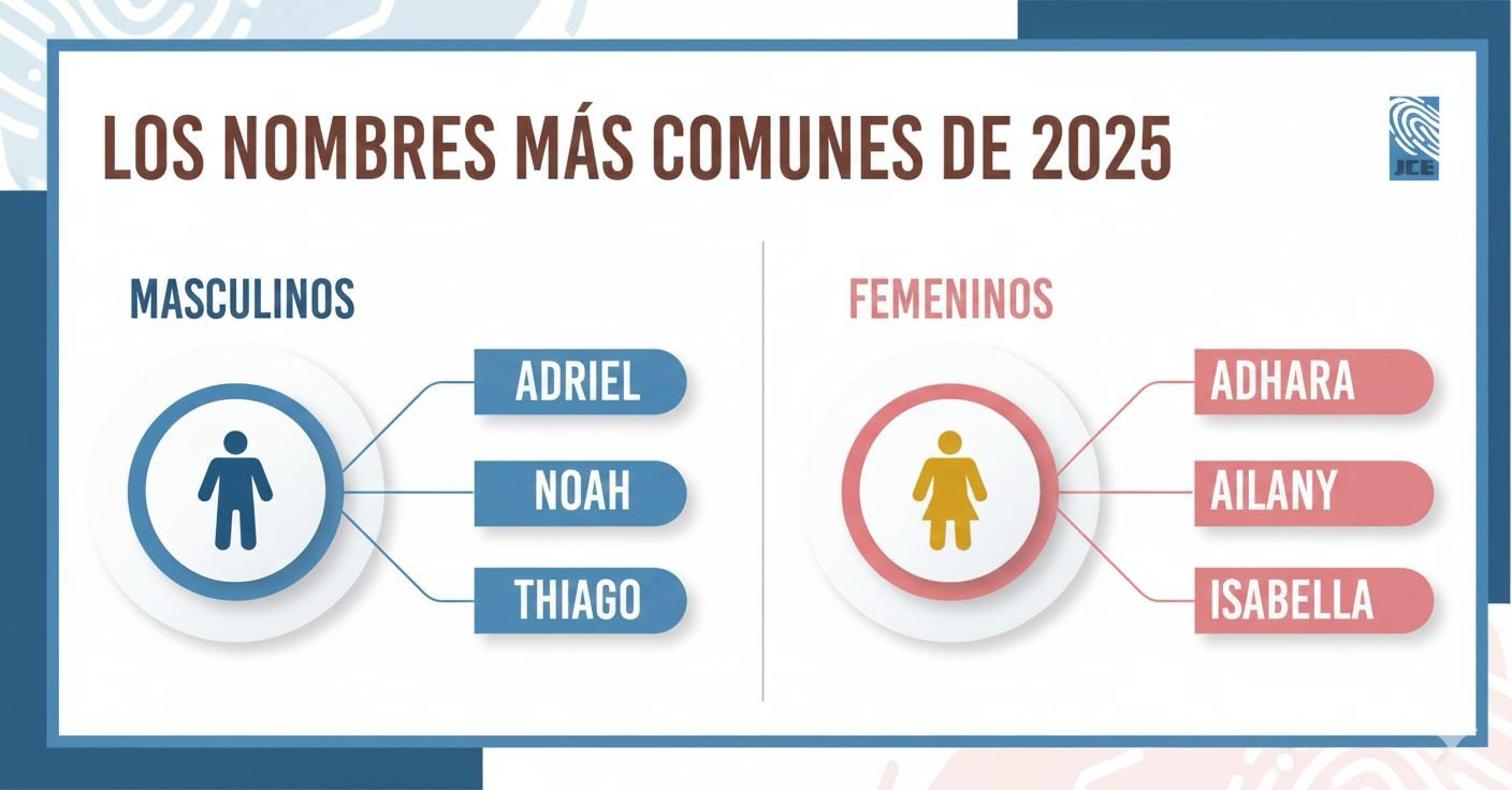 Santo Domingo, RD.– La Junta Central Electoral (JCE) dio a conocer las estadísticas oficiales sobre los nombres y combinaciones de nombres más utilizados durante el año 2025, revelando una marcada mezcla entre nombres modernos, internacionales y tradicionales. Entre las niñas, los nombres más registrados fueron Adhara, Ailany, Isabella, Zoe y Valentina. En cuanto a las combinaciones, encabezaron la lista Mia Isabella, Adhara Sofía y Emma Sofía, lo que confirma la preferencia por nombres cortos, de proyección internacional y el uso recurrente de Sofía como segundo nombre. En el caso de los varones, los nombres más comunes fueron Adriel, Noah, Thiago, Sebastián y Gael. Sobresalen combinaciones como Liam Alexander, Liam Manuel y Eithan Gael, reflejo de la influencia de tendencias modernas y anglosajonas. No obstante, nombres tradicionales como José Ángel y Luis Ángel continúan manteniendo una presencia significativa. La JCE destacó que estos registros evidencian no solo la creatividad de los padres al momento de elegir los nombres de sus hijos, sino también la permanencia de nombres bíblicos y clásicos, que hoy se combinan con opciones más innovadoras. Con la publicación de estos datos, la institución reafirma su labor de garantizar la identidad de los ciudadanos y de documentar las tendencias culturales del país, mostrando un panorama donde la tradición y la modernidad conviven en los nombres de los dominicanos. Navegación de entradas Agropecuarios advierten no habrá paz laboral si no se atienden sus demandas Aclaran que modificación a la Ley 75-25 sobre distribución de recursos municipales no elimina sanciones