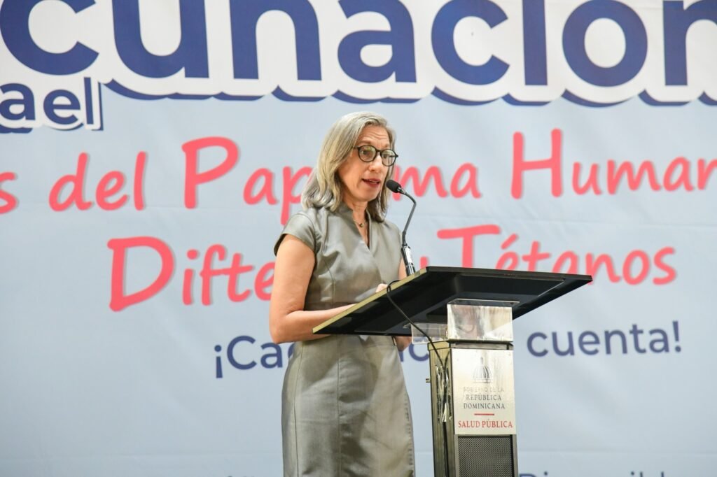 La representante de la OPS/OMS, Alba María Ropero, felicitó al país por ampliar la cobertura de vacunación, ahora dirigida tanto a niños como a niñas de 9 a 14 años. Destacó que la República Dominicana introdujo la vacuna contra el VPH en 2017 y cuenta desde 2020 con un Plan Nacional para la eliminación del cáncer cervicouterino.