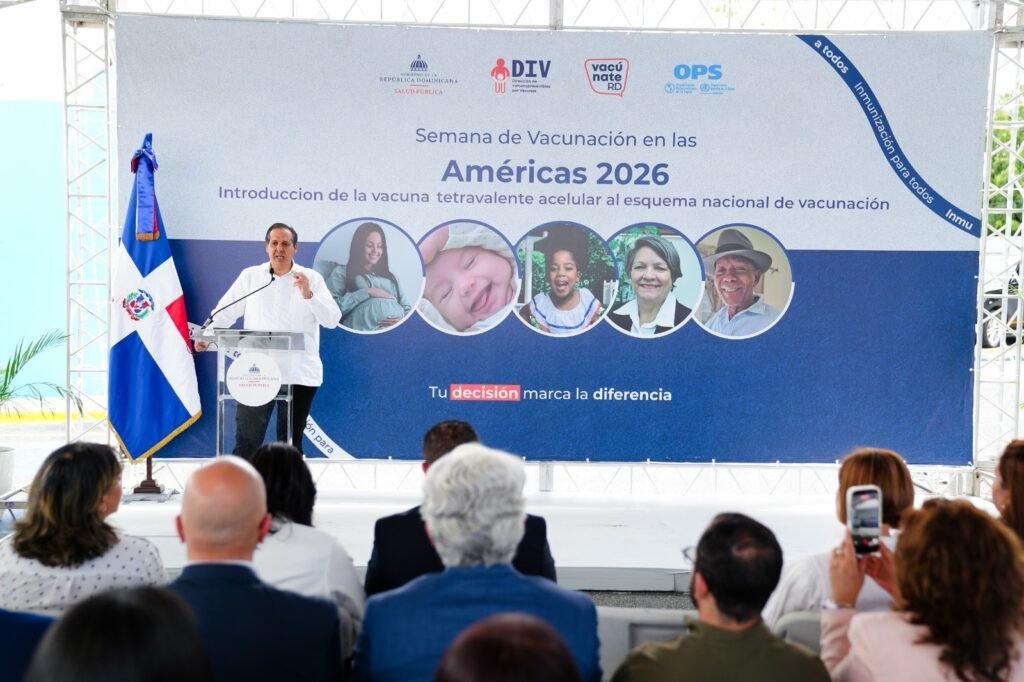 Santo Domingo. – Con el objetivo de proteger la salud de la niñez, el Ministerio de Salud introdujo la vacuna tetravalente acelular al esquema nacional de vacunación, como parte de las actividades de la 24ª Semana de Vacunación en las Américas (SVA) 2026 y la 15ª Semana Mundial de la Inmunización.