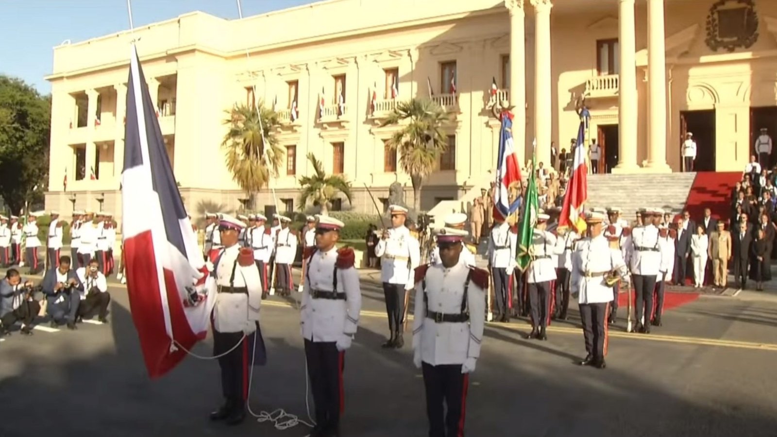 SANTO DOMINGO, RD.– El presidente de la República, Luis Abinader, encabezó este lunes el acto de homenaje a la Bandera Nacional en la explanada frontal del Palacio Nacional. La ceremonia se realizó como parte de las celebraciones del Mes de la Patria, destacando el compromiso con los símbolos que representan la identidad dominicana. El evento inició con la interpretación del Himno Nacional mientras el pabellón tricolor era izado en la sede del gobierno. El mandatario estuvo acompañado por altos mandos militares, funcionarios del gabinete y representantes de la Comisión Permanente de Efemérides Patrias, quienes participaron en el acto solemne. Durante la ceremonia se resaltó la importancia de honrar los valores democráticos y el sacrificio de los fundadores de la República. El homenaje buscó exaltar el significado de la bandera como símbolo nacional y reafirmar el compromiso de la actual gestión con la transparencia, la soberanía y el bienestar del pueblo dominicano. Navegación de entradas IDOPPRIL realiza en Baní 3.er Congreso Provincial sobre Prevención de Riesgos Laborales Migración detiene 2,159 haitianos y deporta 1,636 en el país