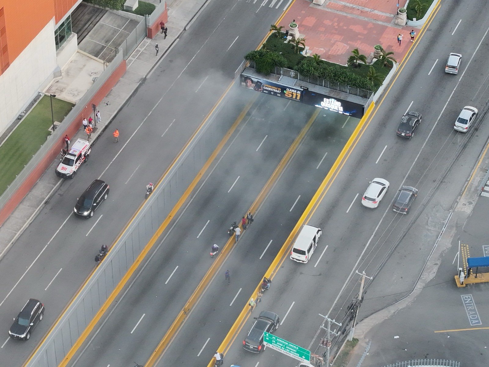 Ante la situación, el Sistema Nacional de Atención a Emergencias y Seguridad 911 coordinó una rápida respuesta, enviando al lugar dos camiones del Cuerpo de Bomberos del Distrito Nacional, una ambulancia de la Dirección de Servicios de Atención a Emergencias Extrahospitalarias, una unidad de drones y una patrulla policial. Asimismo, participaron unidades de la Dirección General de Seguridad de Tránsito y Transporte Terrestre y de la Comisión Militar y Policial.